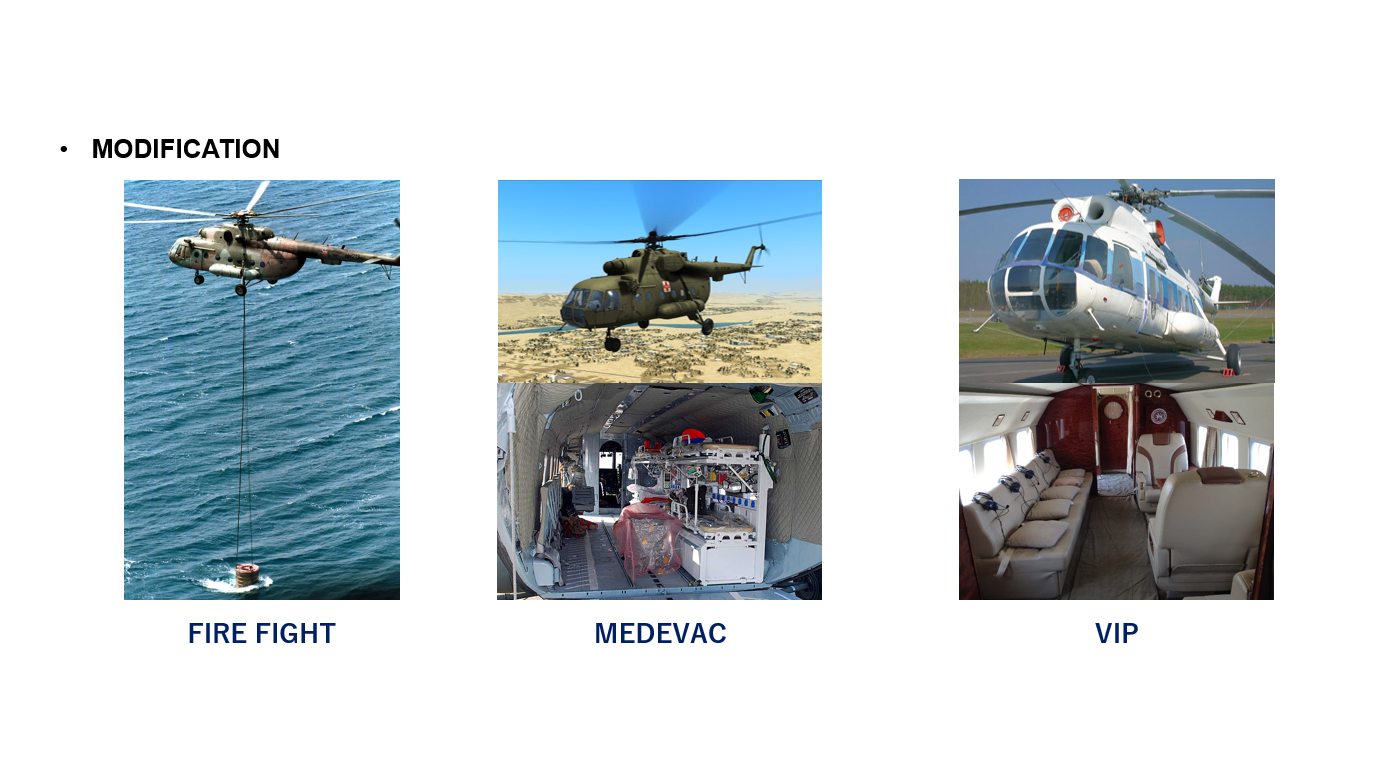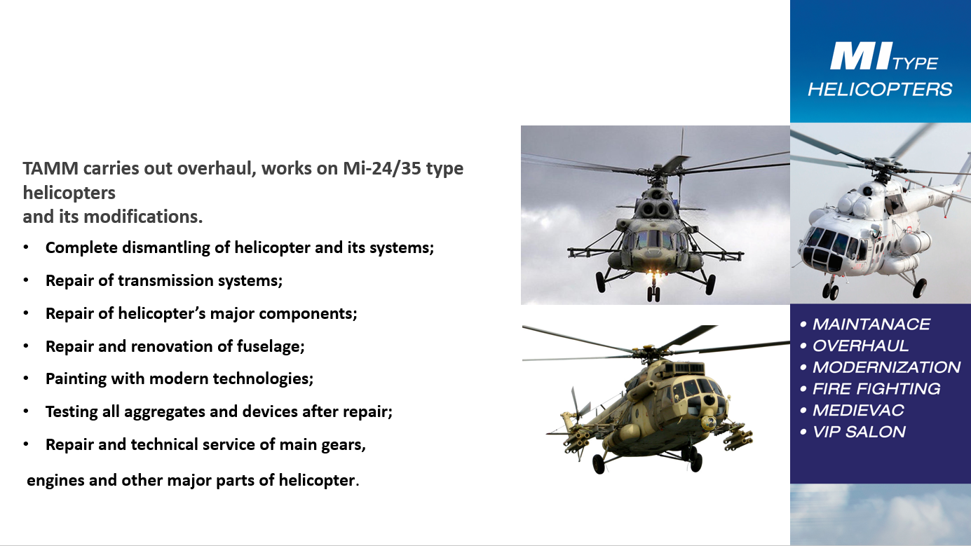 – ვერტმფრენების განახლება და მოდიფიკაცია უახლეს მახასიათებლებამდე.